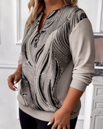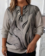 Plus Size Half-Zip Casual Printed Sweatshirt