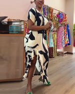 SPECIFICATIONS Style: Casual Material: Cotton Blends Dress Type: Shift dress Dress Length: Midi Neckline: Round Neck Pattern Type: Print Fit Type: Regular Season: Spring,Summer Occasion: Daily Package Includes: 1 x Dress SIZE TABLE Size Bust Length CM INCH CM INCH S 97 37.4 120 47.24 M 101 39.37 121.5 47.83 L 105 41.34 123 48...
