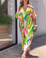 Printed lapel half sleeve casual dress