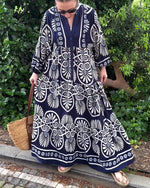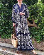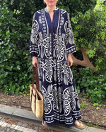 Retro print casual long sleeve dress