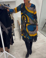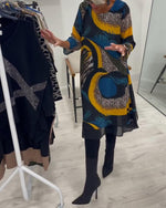 SPECIFICATIONS Style: Casual Material: Cotton Blends Dress Type: Shift dress Dress Length: Midi Neckline: V neck_V Pattern Type: Gradient Sleeve Type: Raglan sleeve Sleeve Length: Long Sleeve Details: Buttons Fit Type: Loose Season: Fall,Winter Occasion: Daily Package Includes: 1 x Dress SIZE TABLE Size Bust Length CM INCH CM INCH S...