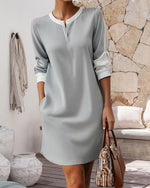 SPECIFICATIONS Style: Casual Material: Cotton Blends Dress Type: Shift dress Dress Length: Knee Length Pattern Type: Solid Color Sleeve Type: Regular sleeve Sleeve Length: Long Sleeve Fit Type: Regular Season: Fall,Winter Package Includes: 1 x Dress SIZE TABLE Size Bust Length CM INCH CM INCH S 97 38.19 95 37.40 M 101 39.76 96 37.80...