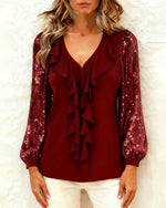 Plus-Size Ruffled Sequined Blouse