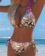 SPECIFICATIONS Style: Vacation Material: 15% Spandex,85% Polyester Occasion: Vacation Pattern Type: Print,Leopard Sleeve Length: Sleeveless Top Type: Bikini Bra Type: Wireless Bra Fit Type: Skinny Season: Spring,Summer,Fall,Winter Details: Lace Up Package Includes: 1 x Bikini SIZE TABLE Size Bust Waist Hip Under bust CM INCH CM INCH CM INC...