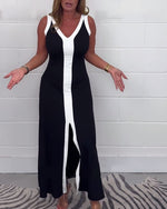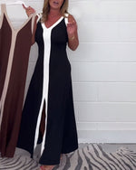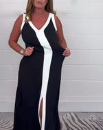 Sleeveless colorblock slit dress