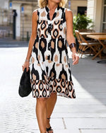 Printed Contrast Color Sleeveless Dress
