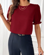 Loose-Fitting Velvet Three-Quarter Sleeve Blouse