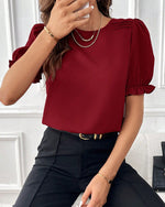 SPECIFICATIONS Top Type: Tops Style: Casual Material: Velvet Occasion: Daily Neckline: V neck_V Pattern Type: Solid Color Sleeve Type: Puff Sleeve Sleeve Length: Long Sleeve Fit Type: Regular Season: Fall,Winter Details: Ruffle Package Includes: 1 x Top SIZE TABLE Size Bust Length CM INCH CM INCH S 97 38.19 65 25.59 M 101 39.7...