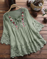 Loose-Fitting Velvet Three-Quarter Sleeve Blouse
