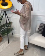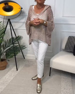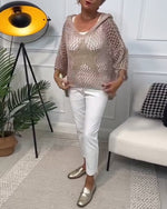 V-Neck Leopard Print Mesh Sequined Patchwork Top