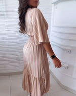 Elegant Solid Color Round Neck Full Skirt Dress