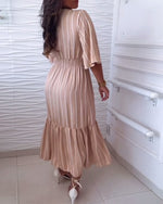 Lace-Trimmed Pleated Loose Dress