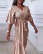 Stripe print drawstring casual dress