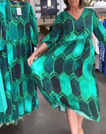 SPECIFICATIONS Style: Casual Material: Cotton Blends Dress Type: A-Line Dress Length: Maxi Neckline: V neck_V Pattern Type: Solid Color Sleeve Type: Puff Sleeve Sleeve Length: Long Sleeve Fit Type: Regular Season: Fall,Winter Occasion: Daily Package Includes: 1 x Dress SIZE TABLE Size Bust Length CM INCH CM INCH S 97 38.19  125 4...