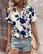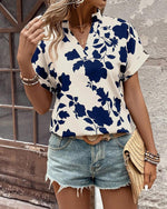V-Neck Bat Sleeve Printed Shirt