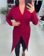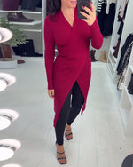 SPECIFICATIONS Category: Sweater Dresses Style: Casual Material: Acrylic,Spandex,Polyester Neckline: Lapel Sleeve Type: Dropped shoulder Dress Type: Straight Dress Length: Knee Length Sleeve Length: Long Sleeve Details: Buckle Fit Type: Regular Occasion: Daily Season: Fall,Winter Package Includes: 1 x Sweater Dress SIZE TABLE Size  Bust  ...
