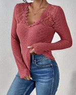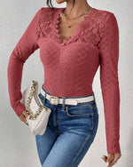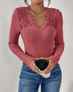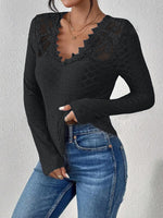 SPECIFICATIONS Top Type: Tops Style: Casual Material: Mesh,Velvet Occasion: Daily Neckline: V neck_V Pattern Type: Solid Color Sleeve Type: Regular sleeve Sleeve Length: Long Sleeve Fit Type: Regular Season: Fall,Winter Package Includes: 1 x Top SIZE TABLE Size Bust Length CM INCH CM INCH S 97 38.19 68 26.77 M 101 39.76 69.5 27...
