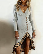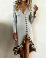 SPECIFICATIONS Style: Chic Material: Cotton Blends Dress Type: Shift dress Dress Length: Above-knee Neckline: V neck_V Pattern Type: Color Block Sleeve Type: Lantern Sleeve Sleeve Length: Long Sleeve Details: Patchwork Fit Type: Regular Season: Fall,Winter Occasion: Daily Package Includes: 1 x Dress SIZE TABLE Size Bust Length CM IN...