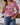 Retro printed V-neck casual top