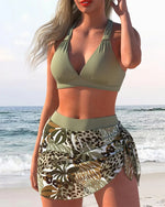 Sexy Printed Sun-Protective Three-Piece Swimsuit