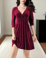 SPECIFICATIONS Style: Elegant Material: Spandex, Polyester Dress Type: Shift dress Dress Length: Knee Length Neckline: V neck_V Pattern Type: Solid Color Sleeve Type: Slit Sleeves Sleeve Length: Half Sleeve Details: Patchwork Fit Type: Regular Season: Spring, Summer Occasion: Daily Package Includes: 1 x Dress SIZE TABLE Size ...