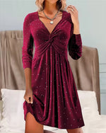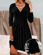 SPECIFICATIONS Style: Chic Material: 100% Polyester Dress Type: A-Line Dress Length: Knee Length Neckline: V neck_V Pattern Type: Solid Color Sleeve Type: Regular sleeve Sleeve Length: Long Sleeve Fit Type: Regular Season: Fall, Winter Occasion: Daily, Vacation Package Includes: 1 x Dress   SIZE TABLE Size Bust Length Sleeves...