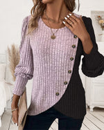 SPECIFICATIONS Top Type: Tops Style: Chic, Sexy Material: 35% Spandex, 65% Polyester Occasion: Daily Neckline: V neck_V Pattern Type: Solid Color Sleeve Type: Regular sleeve Sleeve Length: Long Sleeve Fit Type: Regular Season: Spring, Fall Details: Patchwork, Buttons, Hollow Out Package Includes: 1 x Tops SIZE TABLE Size ...