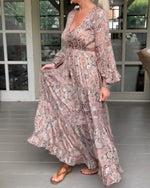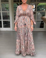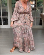SPECIFICATIONS Style: Vacation, Elegant Material: Spandex, Polyester Dress Type: A-Line Dress Length: Maxi Neckline: V neck_V Pattern Type: Paisley Sleeve Type: Lantern Sleeve Sleeve Length: Long Sleeve Details: Shirred Fit Type: Regular Season: Spring, Summer, Fall Occasion: Daily, Vacation Package Includes: 1 x Dress SIZE TABLE ...