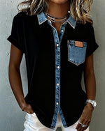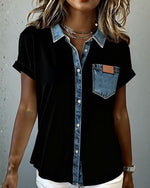 Short-Sleeved Solid Color Patchwork T-Shirt