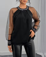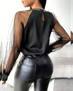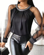 Icon1 Hot Rhinestone Mesh Long-Sleeved Fashionable Blouse