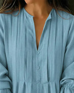 V-Neck Pleated Long Sleeve Top