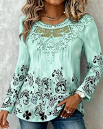 SPECIFICATIONS Top Type: Blouses Style: Casual Material: A: 100% Cotton B: 100% Polyester Occasion: Daily Neckline: V neck_V Pattern Type: Solid Color Sleeve Type: Regular sleeve Sleeve Length: Long Sleeve Fit Type: Regular Season: Fall,Winter Details: Patchwork,Lace Package Includes: 1 x Blouse SIZE TABLE Size Bust Length C...
