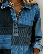 Long-Sleeved Denim Patchwork Shirt