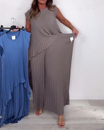 SPECIFICATIONS Top Type: Blouses Style: Casual Material: Cotton Blends Occasion: Daily Neckline: Round Neck Pattern Type: Solid Color Sleeve Type: Regular sleeve Sleeve Length: Short Sleeve Pants Length: Long Fit Type: Loose Season: Spring, Summer, Fall Details: Slit Package Includes: 1 x Blouse, 1 x Pants SIZE TABLE Size ...