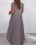 Casual solid color high collar pullover mesh dress set