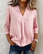 SPECIFICATIONS Top Type: Tops Style: Casual Material: 20% Linen 80% Cotton Occasion: Daily Neckline: V neck_V Pattern Type: Solid Color Sleeve Type: Regular sleeve Sleeve Length: Long Sleeve Fit Type: Regular Season: Spring,Fall Package Includes: 1 x Top SIZE TABLE Size Bust Length CM INCH CM INCH S 97 38.19 65 25.59 M 10...
