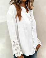 SPECIFICATIONS Top Type: Blouses Style: Casual Material: 20% Linen 80% Cotton Occasion: Daily Neckline: V neck_V Pattern Type: Solid Color Sleeve Type: Regular sleeve Sleeve Length: Long Sleeve Fit Type: Regular Season: Spring,Summer,Fall Details: Ruffle Package Includes: 1 x Blouse SIZE TABLE Size Bust Length CM INCH CM I...