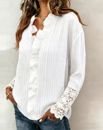 SPECIFICATIONS Top Type: Blouses Style: Casual Material: A: 100% Cotton,B: 100% Polyester Occasion: Daily Pattern Type: Solid Color Sleeve Type: Puff Sleeve Sleeve Length: Long Sleeve Fit Type: Regular Season: Spring,Summer,Fall Details: Tassel,Backless,Lace Package Includes: 1 x Blouse SIZE TABLE Size Bust Length CM INCH C...