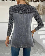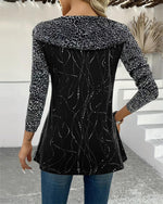 Casual V-Neck Leopard Print Lace Panel Blouse