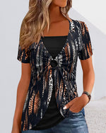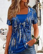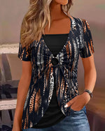 Fake Two-Piece Lace-Up Leopard Print T-Shirt