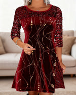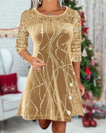 SPECIFICATIONS Style: Elegant Material: Cotton Blends,Mesh Dress Type: Shift dress Dress Length: Above-knee Neckline: Round Neck Pattern Type: Sequin Sleeve Type: Regular sleeve Sleeve Length: 3/4 Sleeve Details: Patchwork Fit Type: Regular Season: Fall,Winter Occasion: Daily Package Includes: 1 x Dress SIZE TABLE Size Bust Length CM IN...