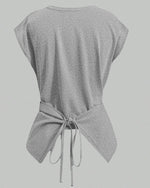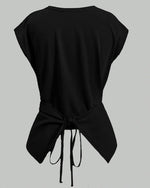 100% Cotton V-Neck Three-Quarter Sleeve Slit Top
