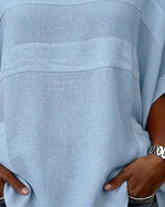 100% Cotton V-Neck Three-Quarter Sleeve Slit Top