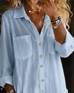 100% Cotton Wide-Collar Solid Color Casual Blouse