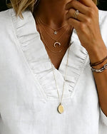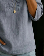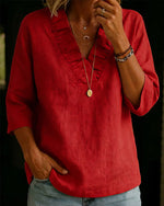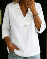 100% Cotton Wide-Collar Solid Color Casual Blouse