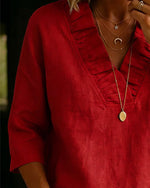 100% Cotton V-Neck Three-Quarter Sleeve Slit Top