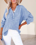 SPECIFICATIONS Top Type: Tops Style: Casual, Vacation Material: 5% Polyester,95% Cotton and linen Occasion: Daily, Vacation Neckline: Round Neck Pattern Type: Solid Color Sleeve Type: Regular sleeve Sleeve Length: Short Sleeve Fit Type: Regular Season: Spring, Summer, Fall Details: Buttons Package Includes: 1 x Top SIZE TABLE (cm) S...