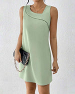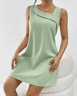 Sleeveless pleated simple solid color dress
