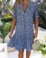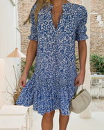 SPECIFICATIONS Style: Elegant Material: 5% Spandex,95% Polyester Dress Type: Shift dress Dress Length: Knee Length Neckline: V neck_V Pattern Type: Print Sleeve Length: Short Sleeve Fit Type: Regular Season: Spring, Summer, Fall Occasion: Daily Package Includes: 1 x Dress SIZE TABLE Size Bust Length Sleeves Shoulder ...