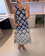 V-Neck Diamond Print Sleeveless Dress